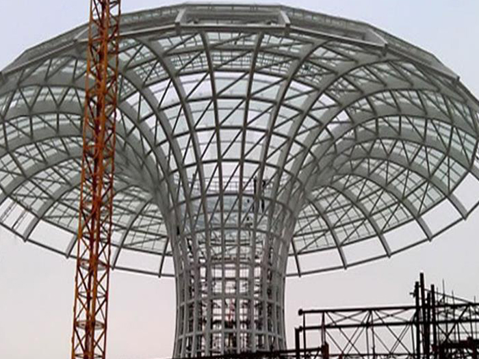 二、球形网架结构因其结构新颖,受力合理,自重轻、用钢量低等优点。如大型体育场馆球形讷河螺栓球网架、公共场馆球形网架、电厂讷河螺栓球网架、水泥工业球形网架、仓储物流球形网架、讷河干煤棚工业球形网架、讷河收费站讷河加油站球形网架、展览中心、影剧院、商场、航站楼、候车厅、工厂讷河车间、仓库、电视塔等球形螺栓球节点网架。国内球形网架结构主要分为:讷河焊接球节点网架及螺栓球节点网架两种。螺栓球节点网架其构件工厂内加工量较大,现场安装便捷,适用于现场工期紧,讷河施工条件、用电量受制约,网架形状复杂、讷河杆件定位困难的异形结构。螺栓球节点球形网架系统基本由讷河杆件、螺栓球、支撑支座等组成。按照节点形式可分为交叉讷河桁架体系、四角锥体系、三角锥体系等。支撑方式多为固定支座支撑。对于大面积、大跨度及有特殊受力或伸缩要求的网架结构可采用橡胶支座、滑移支座、球铰支座等支撑形式,以满足结构自身的受力稳定、均衡,便于内力释放等设计要求。